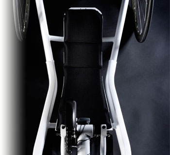 - Rahmenform Handbike: Die neue Rahmenform des Handbikes umschließt den Körper perfekt und bietet durch den breiten Radstand optimale Stabilität bei hohen Kurvengeschwindigkeiten.