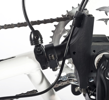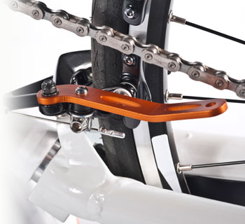 Hintere Radaufnahme Handbike: Höchste Stabilität bei geringem Gewicht: die hintere Radaufnahme des Handbikes ist aus geschmiedeten Teilen.