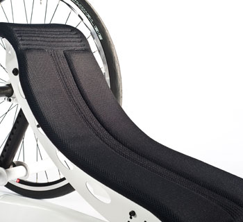 Standardrücken Handbike: Der Standardrücken ist höhen- und winkeleinstellbar und bietet somit eine ideale Liegeposition im Handbike bei gleichzeitigem Komfort.